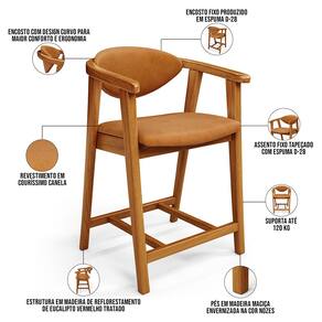 Kit 02 Banquetas Baixa Para Cozinha Sala Jantar Bancada Cecília L02 Couríssimo Canela - Lyam Decor - Marrom