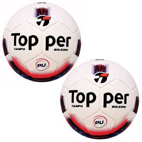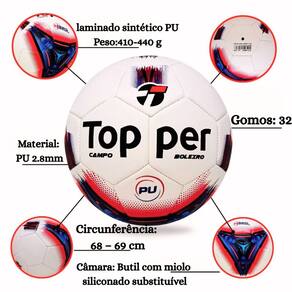 Kit com 2 Bolas de Futebol Campo Topper Boleiro Hibrid Prepare-se para elevar o nível das suas partidas com o Kit Topper Boleiro Hibrid – 2 unidades. Projetadas para quem busca alto desempenho aliado ao custo-benefício, essas bolas garantem jogadas precisas, durabilidade incomparável e muito mais praticidade para treinos e jogos oficiais. Com laminado sintético PU de 2.8mm e 32 gomos, oferecem toque macio e controle superior. A tecnologia Hibrid + TecnoFusion une costura automatizada à fusão térmica, proporcionando maior resistência e vida útil. A estrutura interna reforçada com fios de nylon multiaxiais impregnados em borracha natural garante firmeza e estabilidade em cada jogada. A câmara de butil com miolo siliconado substituível mantém a calibragem ideal entre 8 e 10 libras por mais tempo, enquanto a durabilidade comprovada em testes de 2.000 chutes a 50 km/h assegura qualidade profissional. Diferenciais do Kit