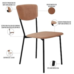 Color: Bege | ColorFamily: Bege | ColorSimple: Bege | ColorSupplier: Bege | Material: Estrutura em Aço, MDP, Revestimento em Veludo e espuma | MaterialFamily: Aço, MDP, Veludo e espuma | Model: Village | OriginCountry: Brasil | OriginState: PR | ProductContents: 02 Cadeiras | ProductHeight: 166 cm | ProductInstructions: Produto para uso em ambiente interno, nao devendo ficar exposto ao sol, calor e umidade excessivos. | ProductLength: 53 cm | ProductWarranty: 90 dias após o recebimento do produto | ProductWeight: 13 kg | ProductWidth: 43 cm | SizeDescription: Altura: 166 cm x Largura: 43 cm x Profundidade: 53cm | SupplierSimpleName: Kit 02 Cadeira Para Sala de Jantar Village Preto C01 Veludo Bege - Lyam Decor
