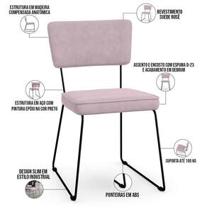 O espetáculo que é o Kit 02 Cadeiras Decorativas Para Sala De Jantar Allana L02 Suede Rosê - Lyam Decor vem para agregar ainda mais valor na decoração da sua casa. Sua estrutura em aço remete-nos ao estilo industrial que surgiu em Nova York no século XX, já o assento e encosto estofados trazem equilíbrio e conforto criando a combinação perfeita para o ambiente.