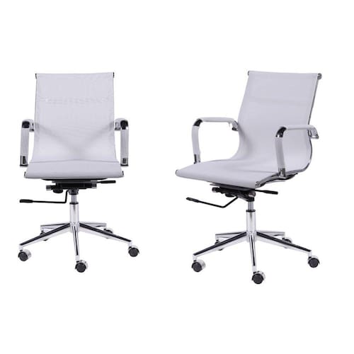 Produto: kit 02 Cadeiras Boxbit Eames Office Tela Baixa Branca Base Rodízio
