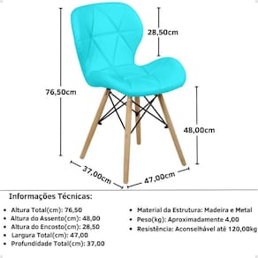 Um diferencial importante destas cadeiras é que elas possuem uma base fabricada em madeira e o seu assento em madeira compensada estofada revestida em material ecológico, sendo materiais que trazem mais resistência à cadeira e um toque de estilo a mais no modelo. Vale a pena apostar nesta cadeira, a versatilidade e o seu formato permite que ela seja colocada em diversos espaços da casa.