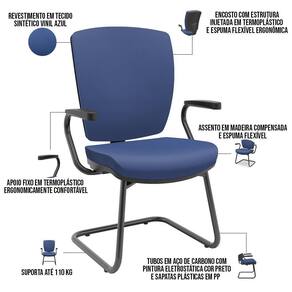 Kit 02 Cadeiras De Escritório Fixa Executiva Office Preto Slim Alta Flexi P03 Vinil Azul - Lyam O Kit 02 Cadeiras de Escritório Flexi, é uma opção robusta e elegante para um ambiente de trabalho confortável. Essa cadeira combina elementos de design moderno e materiais duráveis para oferecer suporte ergonômico e resistência ao uso diário. Projetada para uso em ambientes de trabalho, como escritórios ou salas de estudo, essas cadeiras são conhecidas por sua estabilidade e durabilidade. O encosto alto e assento estofado são características importantes dessa cadeira, pois fornecem apoio e conforto adicional para a região lombar e ajudam a manter uma postura correta durante o período de ofício, é uma escolha funcional e esteticamente agradável para um ambiente de trabalho. Com seu design ergonômico, materiais resistentes e conforto adicional, essa cadeira oferece suporte adequado e durabilidade para enfrentar as demandas evitando assim o desconforto e fadiga ao longo do dia a dia no escritório. Adquira mais conforto para suas horas de trabalho! Dimensões do produto (L x A x P) 64 cm x 100 cm x 55 cm Medidas internas: Profundidade assento: 42,3 cm Largura assento: 49 cm Altura encosto: 52 cm Altura do chão ao assento: 64,3 cm Largura do encosto: 49 cm Características: Cadeira fixa de diálogo, com encosto e apoio com estrutura injetada em termoplástico. Assento em madeira compensada e estofado em espuma flexível, de alta resiliência e alta densidade. Revestimento em Vinil na cor Azul. Base em Aço de Carbono com pintura eletrostática, na cor preto. Sapatas Plásticas injetadas em polipropileno, 100% reciclável. Suporta até 110 kg. - Por se tratar de estofado as medidas podem ter uma pequena variação de até 3 cm. - A tonalidade do produto real poderá ter ligeira variação devido o lote de tecidos. Observações importantes: - A montagem será de responsabilidade do comprador; - Responsabilizamo-nos pela entrega em todo território nacional, até onde as rodovias alcançam, entregas fluviais ou aéreas devem ser cotadas a parte; - Não nos responsabilizamos, no ato da entrega, por subir escadas/elevadores ou transporte por guincho em apartamentos. - Eventuais despesas são de responsabilidade do comprador; - Confira as dimensões do produto e certifique-se de que passará normalmente por supostos elevadores, portas, escadas e/ou corredores de sua residência; NA