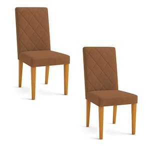 Kit 02 Cadeiras de Jantar Estofada Siena Veludo Pés Trapézio Castanho - Pallazio Cor: Bege - Marrom Cacau