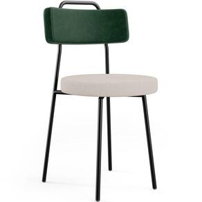 Revestimento do encosto em Facto na cor Verde Musgo e do assento em Linho na cor Bege, com acabamento semi brilho.