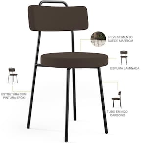 Amplamente moderna, dispondo de muito realce e design singular, o Kit 02 Cadeiras Decorativas Estofadas Para Sala De Jantar Barcelona L02 Suede Marrom - Lyam Decor vem com a personalidade e elegância que sua decoração merece! Estruturada em aço carbono, contrasta lindamente com o encosto e assento estofados, cabe mencionar ainda seu revestimento em Couríssimo, é confeccionada por materiais de excelente qualidade, extremamente resistentes e aconchegantes.