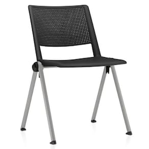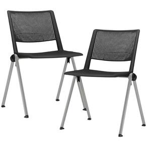 Material do encosto e assento injetado em Polipropileno (PP) na tonalidade Preto.