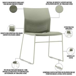 Material do encosto e assento injetado em Polipropileno (PP), na tonalidade Verde.