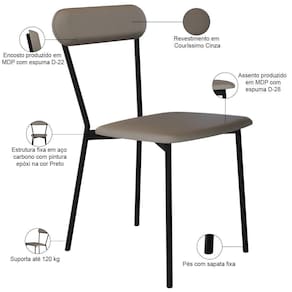 ProductWidth: 43 cm | Desenho do tecido: Liso | ProductWeight: 5,5 kg | Cor: Cinza | ProductHeight: 162 cm | SizeDescription: Altura: 162 cm x Largura: 43 cm x Profundidade: 53 cm | Cor do assento: Cinza | ProductWarranty: 90 dias após o do produto | SupplierSimpleName: Kit 02 Cadeiras Estofada Para Sala de Jantar Liora Preto C01 Courino Cinza - Lyam Decor | Tempo de montagem: na | Altura do assento a partir do solo: 49 cm | Color: Cinza | ColorFamily: Cinza | ColorSimple: Cinza | ColorSupplier: Cinza | Cor do estofamento: Cinza | Fabricante: Lyam Decor | Material: Estrutura em Aço e MDP, Revestimento em Couro sintético e espuma | MaterialFamily: Aço, MDP, Couro sintético e Espuma | Model: Liora | OriginCountry: | ProductLength: 53 cm | É cadeira de balanço: Não | Material do estofamento: Espuma D-22 e D-28 | Altura da cadeira: 162 cm | Profundidade da cadeira: 53 cm | Profundidade do assento: 53 cm | Largura do assento: 43 cm | Largura da cadeira: 43 cm | Espessura do assento: na | É dobrável: Não | É empilhável: Não | Requer montagem: Não | ProductInstructions: Produto para uso em ambiente interno, nao devendo ficar exposto ao sol, calor e umidade excessivos. | OriginState: PR | Cor da estrutura da cadeira: Preto | Peso máximo suportado: 120 kg | ProductContents: 02 Cadeiras | Firmeza: Firme