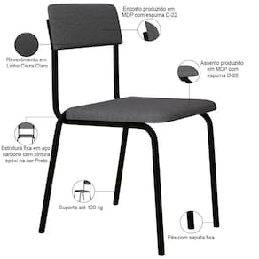 Color: Cinza | OriginState: PR | Cor da estrutura da cadeira: Preto | Largura do assento: NA | Cor do estofamento: Cinza claro | Material: Estrutura em Aço e MDP, Revestimento em Linho | ProductContents: 02 Cadeiras | SizeDescription: Altura: 162 cm x Largura: 48 cm x Profundidade: 51 cm | ProductWeight: 11,5 kg | Profundidade da cadeira: 51 cm | ColorSimple: Cinza | ColorSupplier: Cinza Claro | Model: Sense | Altura do assento a partir do solo: 47,5 cm | Tempo de montagem: na | Cor: Cinza claro | ColorFamily: Cinza | MaterialFamily: Aço, MDP e Linho | Fabricante: Lyam Decor | ProductWidth: 48 cm | OriginCountry: Brasil | SupplierSimpleName: Kit 02 Cadeiras Estofada Para Sala de Jantar Sense Preto C01 Linho Cinza Claro - Lyam Decor | ProductWarranty: 90 dias após o recebimento do produto | ProductLength: 51 cm | Requer montagem: Não | ProductHeight: 162 cm | ProductInstructions: Produto para uso em ambiente interno, nao devendo ficar exposto ao sol, calor e umidade excessivos. | Cor do assento: Cinza claro | É cadeira de balanço: Não | Desenho do tecido: Liso | Material do estofamento: Aço, MDP e Linho | Altura da cadeira: 81 cm | É empilhável: Não | Profundidade do assento: 40 cm | Largura da cadeira: 47,5 cm | Espessura do assento: na | Firmeza: Firme | Peso máximo suportado: 120 kg | É dobrável: Não