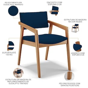O Kit 02 Cadeiras Para Sala de Jantar Estar Living Giorgia B04 Suede Azul MArinho, da Lyam Decor, é perfeito para adicionar um toque moderno à sala de jantar. Com sua estrutura em madeira maciça envernizada, ela traz durabilidade e estilo para o ambiente. O assento e o encosto estofados e revestidos com tecidos alto padrão proporcionam conforto durante as refeições, além de serem fáceis de limpar.