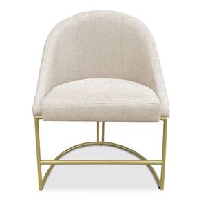 Kit 02 Cadeiras Poltrona de Jantar Bela Linho Bege Base Metálica Industrial Dourado - Pallazio