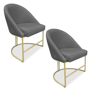 Kit 02 Cadeiras Poltrona de Jantar Bela Linho Grafite Base Metálica Industrial Dourado - Pallazio