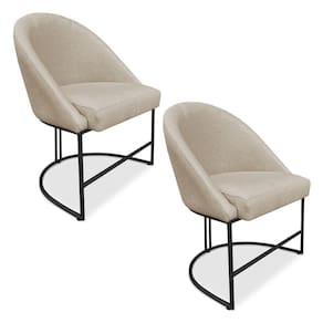 Kit 02 Cadeiras Poltrona De Jantar Bela Veludo Bege Base Metálica Industrial Preto - Pallazio