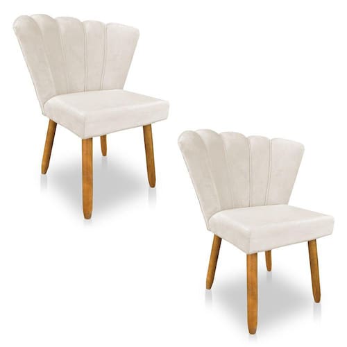 Kit 02 Cadeiras Poltrona Flor Veludo Bege Pés Palito Castanho - Pallazio