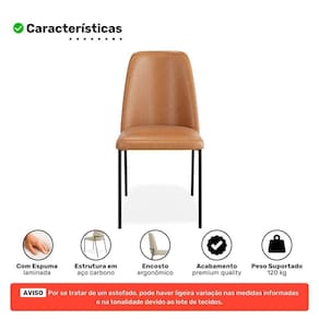Seu encosto estofado ergonômico oferece apoio ideal para a coluna, tornando cada momento à mesa ainda mais confortável. O assento é revestido em couríssimo, material nobre que agrega charme e praticidade, além de trazer uma sensação agradável ao toque.
