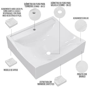 Kit 02 Cubas De Apoio Quadrada Para Banheiro Lavabo C01 Q440 Branco - Lyam Decor Seu banheiro de cara nova! Hoje, incrivelmente um dos locais da casa onde mais pedem decoração é o banheiro ou lavabo. Aqui apresentamos a você uma cuba elegante e de um escoamento de água excelente para proporcionar mais comodidade e versatilidade para os usuários do lavatório. Além de enriquecer o visual do seu banheiro, determina a funcionalidade do mesmo. Vale ressaltar que as torneiras mais indicadas para este tipo de cuba são as de parede ou de bica alta, e exige também uma bancada com espaço superior suficiente para abrigar a mesma, junto com os outros adornos de banheiro que você desejar. Ideal para fazer parte do seu sonho! Dimensões da Cuba (L x A x P) 44,5 x 11,5 x 40 cm Características: Estrutura em Mármore Sintético com acabamento Hard Lacca PU, semelhante a louça e responsável por criar mais resistência a peça. Acabamento Brilho. Furação da Cuba: Válvula Universal 7/8 (32mm). Formato: Quadrada. Modelo: Apoio. Importante: O produto é enviado montado, requerendo apenas instalação por parte do cliente. Recomendação de Limpeza: Recomenda-se lavagem do produto com bucha apenas do lado amarelo e detergente neutro. Observações importantes: - Produto para uso residencial em ambiente interno, não devendo ficar exposto diretamente ao sol, calor e umidade excessivos. - Pode haver alguma diferença de tonalidade entre a imagem e o produto real, por conta do tratamento de imagens e a calibração de cores do seu monitor. - As imagens são meramente ilustrativas, não acompanham objetos de decoração e eletrônicos. - Ao receber a mercadoria, o cliente deve verificar as condições da embalagem, caso haja alguma não assine o de . - Montagem, desmontagem e outras instalações serão de responsabilidade do cliente. Não nos responsabilizamos, no ato da , por subir escadas/elevadores ou pelo por guincho em apartamentos. Eventuais despesas são de responsabilidade do comprador. - Confira as dimensões do produto e certifique-se de que passará normalmente por supostos elevadores, portas, escadas e/ou corredores de sua residência. NA