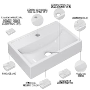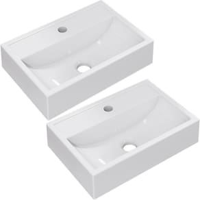 Kit 02 Cubas De Apoio Retangular Para Banheiro Lavabo C01 Q450 Branco - Lyam Decor Seu banheiro de cara nova! Hoje, incrivelmente um dos locais da casa onde mais pedem decoração é o banheiro ou lavabo. Aqui apresentamos a você uma cuba elegante e de um escoamento de água excelente para proporcionar mais comodidade e versatilidade para os usuários do lavatório. Além de enriquecer o visual do seu banheiro, determina a funcionalidade do mesmo. Vale ressaltar que as torneiras mais indicadas para este tipo de cuba são as de parede ou de bica alta, e exige também uma bancada com espaço superior suficiente para abrigar a mesma, junto com os outros adornos de banheiro que você desejar. Ideal para fazer parte do seu sonho! Dimensões da Cuba (L x A x P) 44,5 x 10,5 x 30,5 cm Características: Estrutura em Mármore Sintético com acabamento Hard Lacca PU, semelhante a louça e responsável por criar mais resistência a peça. Acabamento Brilho. Furação da Cuba: Válvula Universal 7/8 (32mm) 11/4 (40mm). Formato: Retangular. Modelo: Apoio. Importante: O produto é enviado montado, requerendo apenas instalação por parte do cliente. Recomendação de Limpeza: Recomenda-se lavagem do produto com bucha apenas do lado amarelo e detergente neutro. Observações importantes: - Produto para uso residencial em ambiente interno, não devendo ficar exposto diretamente ao sol, calor e umidade excessivos. - Pode haver alguma diferença de tonalidade entre a imagem e o produto real, por conta do tratamento de imagens e a calibração de cores do seu monitor. - As imagens são meramente ilustrativas, não acompanham objetos de decoração e eletrônicos. - Ao receber a mercadoria, o cliente deve verificar as condições da embalagem, caso haja alguma não assine o de . - Montagem, desmontagem e outras instalações serão de responsabilidade do cliente. Não nos responsabilizamos, no ato da , por subir escadas/elevadores ou pelo por guincho em apartamentos. Eventuais despesas são de responsabilidade do comprador. - Confira as dimensões do produto e certifique-se de que passará normalmente por supostos elevadores, portas, escadas e/ou corredores de sua residência. NA