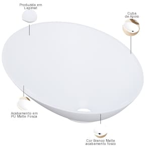 Kit 02 Cubas de Apoio Meia Lua Para Banheiro Lavabo C01 BM38W Branco Matte Fosca - Lyam