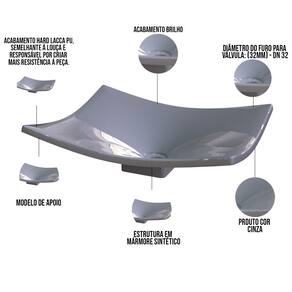 Estrutura em Mármore Sintético com acabamento Hard Lacca PU, semelhante a louça e responsável por criar mais resistência a peça.