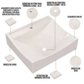 Estrutura em Mármore Sintético com acabamento Hard Lacca PU, semelhante a louça e responsável por criar mais resistência a peça.
