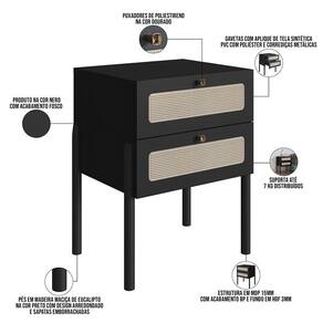 A estrutura com pés em madeira maciça garante durabilidade e robustez, enquanto a delicada telinha sintética nas gavetas adiciona um charme extra, tornando-a não apenas funcional, mas também um verdadeiro destaque na decoração. Organize seus livros, óculos ou itens pessoais com facilidade e mantenha tudo ao seu alcance, criando um espaço que reflete sua personalidade e bom gosto com essa mesa lateral para quarto.