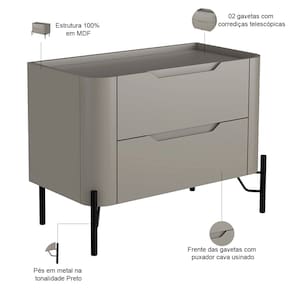 Com design orgânico e influência industrial, essa peça une linhas curvas suaves e pés metálicos, criando um equilíbrio entre delicadeza e contemporaneidade. Os puxadores cava garantem um visual clean, enquanto o MDF de alta qualidade assegura resistência e durabilidade. Compacta mas espaçosa, essa mesa de cabeceira moderna conta com 2 gavetas, oferecendo organização sem perder o charme. Afinal, seu estilo versátil combina com os mais variados ambientes, desde quartos modernos até closets sofisticados, tornando-se a escolha certa para quem busca praticidade sem abrir mão do design.