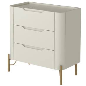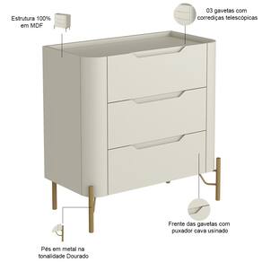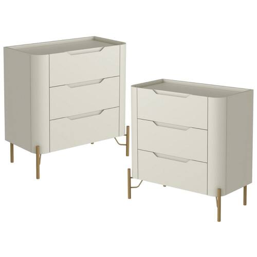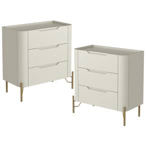 Kit 02 Mesas De Cabeceira Orgânica 3 Gavetas Pés Industrial Dourado Bliss I03 Luna - Lyam Decor - Bege