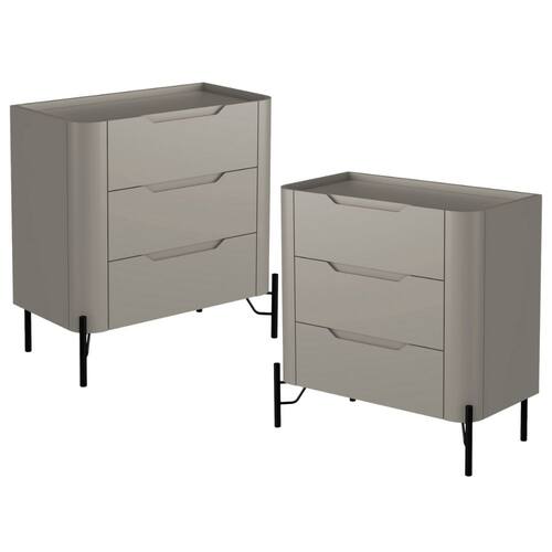 Kit 02 Mesas De Cabeceira Orgânica 3 Gavetas Pés Industrial Preto Bliss I03 Grigio - Lyam Decor - Bege