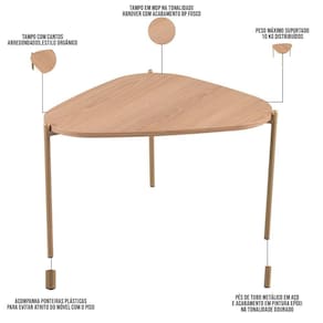 Os pés metálicos garantem estabilidade e estilo, enquanto o tampo arredondado traz uma sensação de fluidez e leveza, fazendo uma opção encantadora para qualquer ambiente. Coloque-a ao lado do sofá e no centro da sala de estar; sua versatilidade permite que você a adapte a várias configurações. Em outras palavras, tanto a mesa de apoio, quanto as mesas de centro são mais do que um simples suporte, são um convite à organização de pequenos objetos que fazem parte do seu dia a dia, como suas leituras atuais, enquanto aprecia aquela xícara de café que você adora.