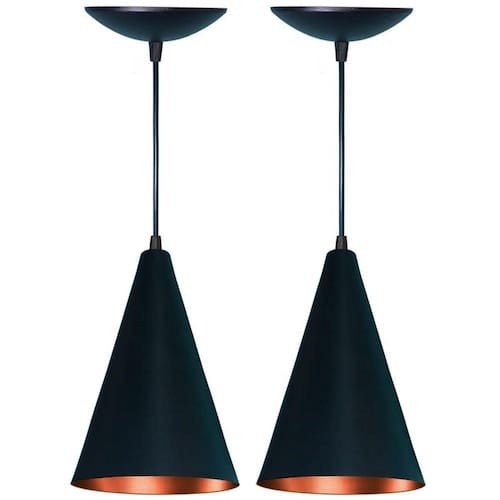 Anúncio referente ao kit de 2 luminárias.Luminária Pendente Cone, fabricada em alumínio, material altamente resistente ao tempo.Luminária composta por cabo PP com 1 metro de comprimento tamanho ajustável , soquete E27, canopla e cúpula em alumínio.Luminária ideal para ambientes internos, utilizada em salas de estar, cozinhas, salas de jantar, área gourmet entre outras.Ilumine e decore o seu lar com nossas lindas luminárias. Deixe a imaginação tomar conta.Lindo pendente para quem gosta de um ambiente com estilo e bem iluminado.Material Alumínio não enferruja Medidas 15 cm diâmetro x 25 cm altura mais 1.00 m de caboAltura aproximada montada de 1,25 m Altura AjustávelSoquete E27 aplicável com lâmpada comum ou LED Luminária Bivolt 127/220 v Não acompanha LâmpadaCor Externa Preto FoscoCor Interna CobreGarantia 3 meses de garantia contra defeitos de fabricação. Marca: Estillo & luz