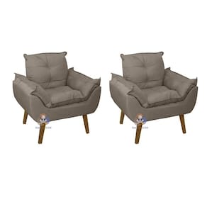 Kit 02 Poltrona/Cadeira Decorativa E Puff Glamour Com Pés Quadrado - Bege Médio
