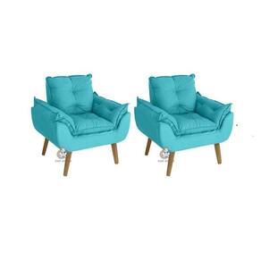 Kit 02 Poltrona/Cadeira Decorativa E Puff Glamour Com Pés Quadrado - Azul Turquesa
