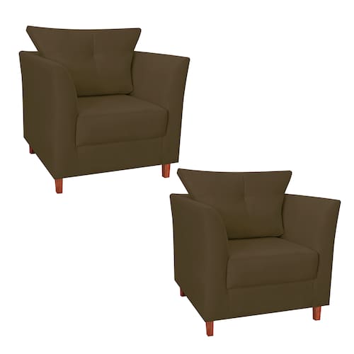 Kit 02 Poltrona Cadeira Sofá Decorativa Isis Sala Estar Salão Beleza Suede Marrom - LM DECOR