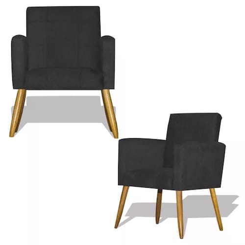 Kit 02 Poltrona Decorativa Nina - Grafite Grafite Kit 02 Poltrona Decorativa Nina se adequa em qualquer ambiente com conforto e requinte, é uma opção ideal para complementar a decoração da sua casa ou escritório. São produzidas com materiais de primeira linha, revestidas em Suede.