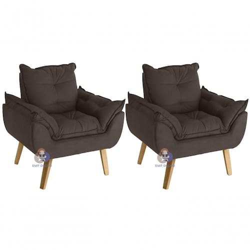 Kit 02 Poltrona Decorativa Opala Marrom Smf Decor