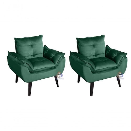 Poltrona Opala agrega beleza e conforto. Produto com design moderno e luxuoso. Fabricada com produtos de altíssima qualidade, composto por pés quadrado de madeira de eucalipto, percinta elástica, grampo em aço galvanizado, tecido sued veludo Light, assento com fibra de silicone, o encosto e braça com fibra de silicone e espuma densidade D-18, para dispor o melhor conforto possível, estrutura em madeiras eucalipto.