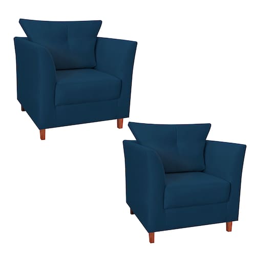Kit 02 Poltrona Estofada Com Almofada Isis Recepção Consultório Suede Azul Marinho - LM DECOR