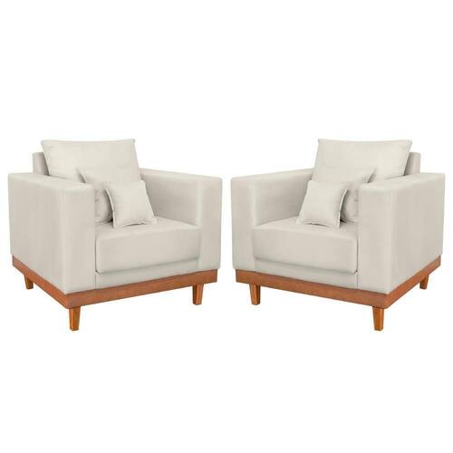 Você receberá 2 volumes, ou seja, um Kit 02 Poltrona Living Suede Base Madeira Sala Recepção