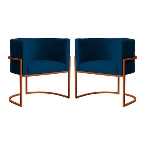 Kit 02 Poltrona Luana Base Bronze Para Sala Veludo Cores - S.A Móveis - Azul Marinho