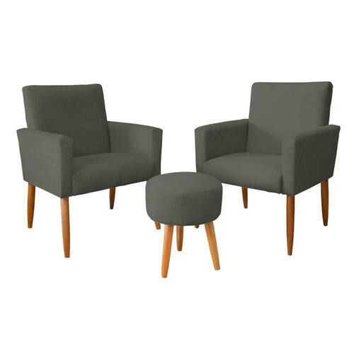 Os Kit 02 Poltrona Nina Com Puff Suede Cinza AB Estofados Suede possui design versátil com extremo conforto e muita beleza para trazer um ambiente diferenciado a sua casa.