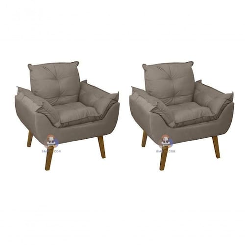 Poltrona Opala agrega beleza e conforto. Produto com design moderno e luxuoso. Fabricada com produtos de altíssima qualidade, composto por pés quadrado de madeira de eucalipto, tecido sued veludo light, assento, encosto e braça com fibra siliconada e espuma densidade D-18, para dispor o melhor conforto possível. Dimensões da Poltrona: Poltrona (Altura x Largura x Profundidade): 85 x 80 x 76 cm.