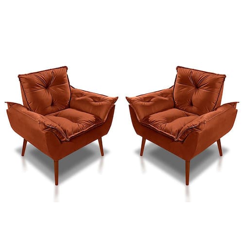 Kit 02 POLTRONA OPALA Estrutura: Madeira de Eucalipto; Revestimento: Suede; Assento: Fibra Siliconada percintas elásticas de 50mm; Encosto: Fibra Siliconada Apoio de Braço: Fibra Siliconada Modelo dos Pés: Redondo ; Material dos Pés: Pés Palito Quantidade de Pés: 4; Quantidade de Lugares: 1; Grampos: de aço galvanizados; Revestimento: Tecido Suede. DIMENSÕES DA POLTRONA Altura total: 85cm; Largura total: 83cm; Profundidade total: 64cm; Largura do Assento: 47cm; Profundidade do Assento:47cm; Peso: 14kg; Peso Suportado: 120kg; Sistema de Montagem: Rosquear os pés A GARANTIA É DE FÁBRICA Sua compra não é apenas aquisição de um produto de qualidade e elegância, é a garantia de uma experiência excepcional. Se, porventura, seu item apresentar qualquer problema nos primeiros noventa dias, fique tranquilo, somos os fabricantes e estamos aqui para oferecer total suporte.SOBRE A NOSSA LOJA Sediada em Arapongas, o maior polo moveleiro do sul do Brasil, a Tucanos Estofados é líder em móveis estofados de alta qualidade. CUIDADOS COM A LIMPEZA Utilizar um pano limpo e seco. Não limpar com produtos abrasivos ou escovas. Não deixar exposta à luz do sol diretamente pois isso irá diminuir a vida útil do produto, fazendo-o envelhecer precocemente. Este produto não é recomendado para ambientes externos onde possa receber chuva. MONTAGEM A Poltrona chegará montada, bastando rosquear os pés. Pode haver alguma diferença de tonalidade entre a imagem e o produto real, por conta do tratamento de imagens e a calibração de cores do seu monitor; Por se tratar de estofado as medidas podem ter uma pequena variação em até 3 cm; Muito inportante fazer a conferencia no ato da entrega, caso o entregador não permita fazer a conferencia, no recibo escreva que o entregador não permitiu fazer a conferencia, tire foto e nós encaminhe. Entrega em zonas rurais, distritos não são inclusas.