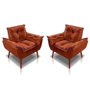Kit 02 Poltrona Opala Decorativa Suede Terracota - Laranja