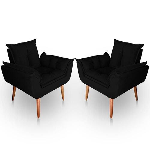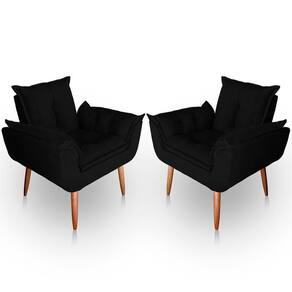 Kit 02 Poltrona Para Sala E Quarto Decorativa Opala Suede Cor Preto