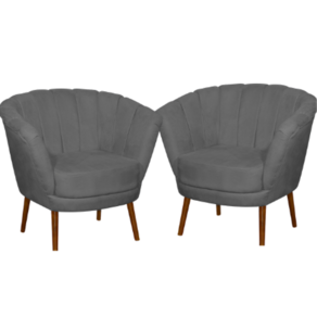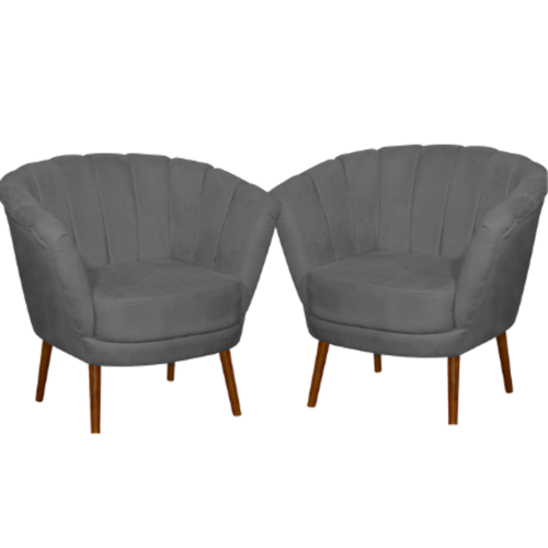 Kit 02 Poltrona Pétala Flor Decorativa Suede Cinza Escuro
