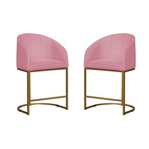 Kit 02 Poltronas Banqueta Mia Decorativa Tecido Suede Base Metal Dourada - Estopar - Rosa