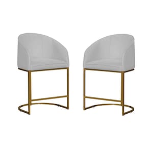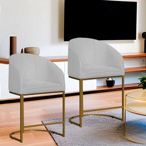 Kit 02 Poltronas Banqueta Mia Decorativa Tecido Suede Base Metal Dourada - Estopar - Branco