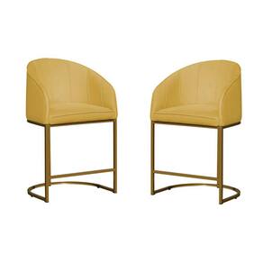 Kit 02 Poltronas Banqueta Mia Decorativa Tecido Suede Base Metal Dourada - Estopar - Amarelo
