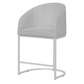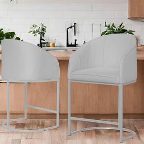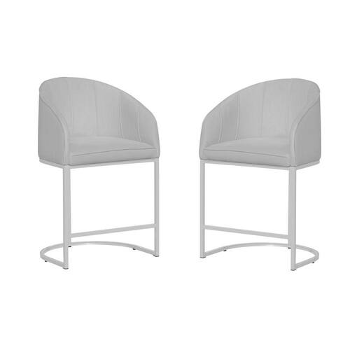 Kit 02 Poltronas Banqueta Mia Estofada Tecido Em Suede Base Metal Branco - Estopar